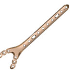 Распределение брокирующих отверстий способствует стабильной фиксации в медиальной и латеральной колоннах, а овальное отверстие для позиционирования пластины позволяет проводить компрессию в обеих направлениях.